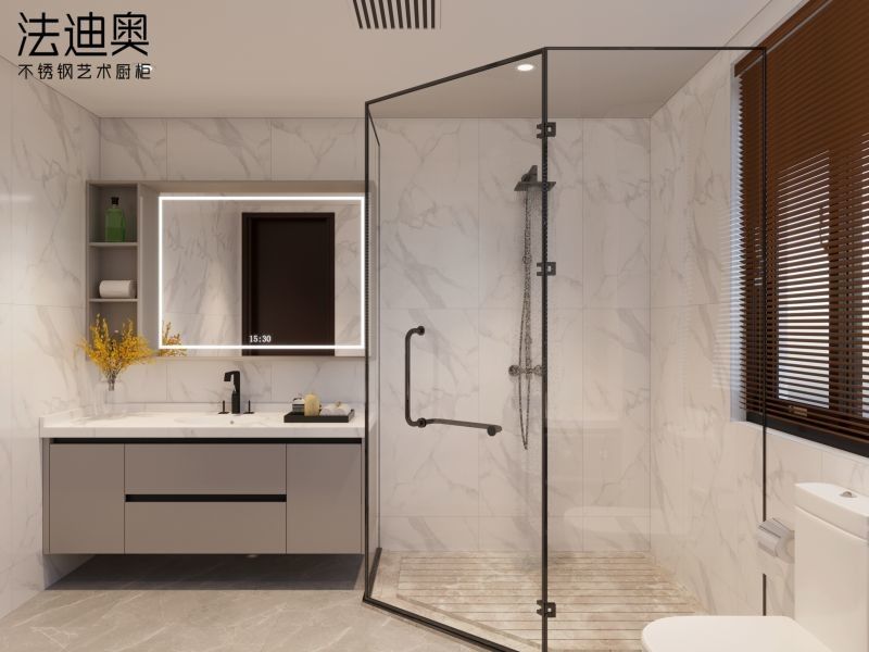 | Q: このステンレス鋼バスルームバニティのデザイン言語を際立たせているものは何ですか? 最も強い手がかりはグレーとモダンです。これにより、素材の主張を繰り返すだけの一般的なキャビネットリストよりも、ページに明確なデザインの視点が与えられます。 |