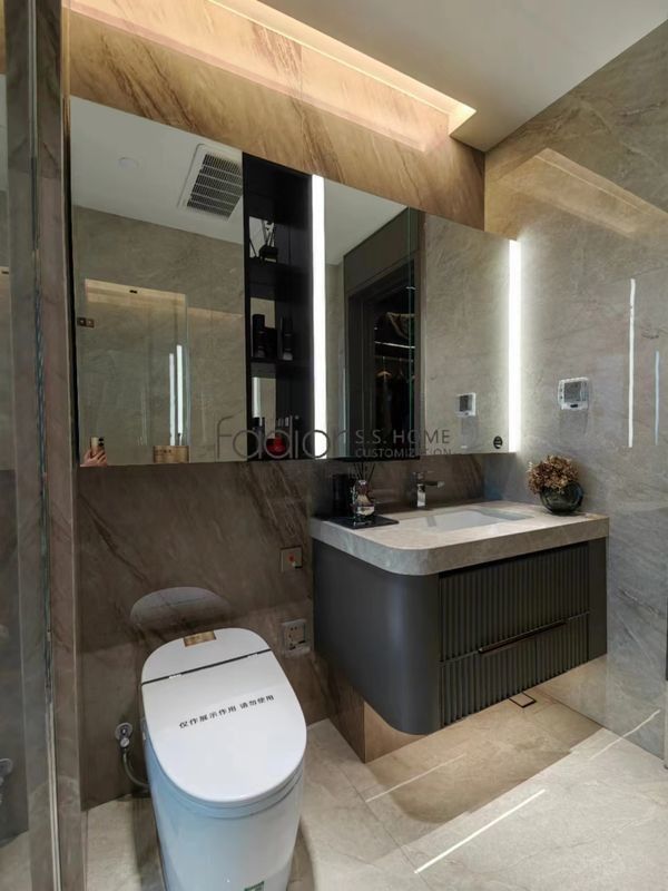 このバスルームバニティは、一般的なSKUではなく、デザイン主導のシステムとして提示されています。管理された仕上げパレットとステンレス鋼のキャビネット構造を組み合わせて、プレミアム住宅プロジェクトにより解決されたビジュアルアイデンティティを作成します。