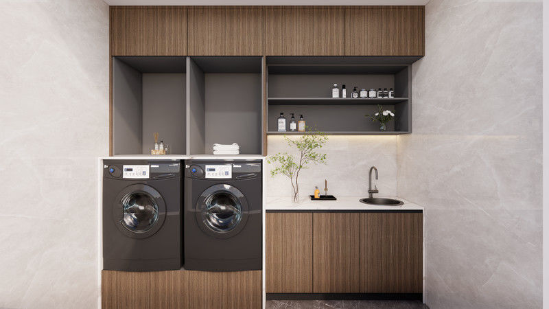 | デザイン | 洗濯機を組み込み 余分な貯蔵スペースを備えて 混沌のないバルコニー |