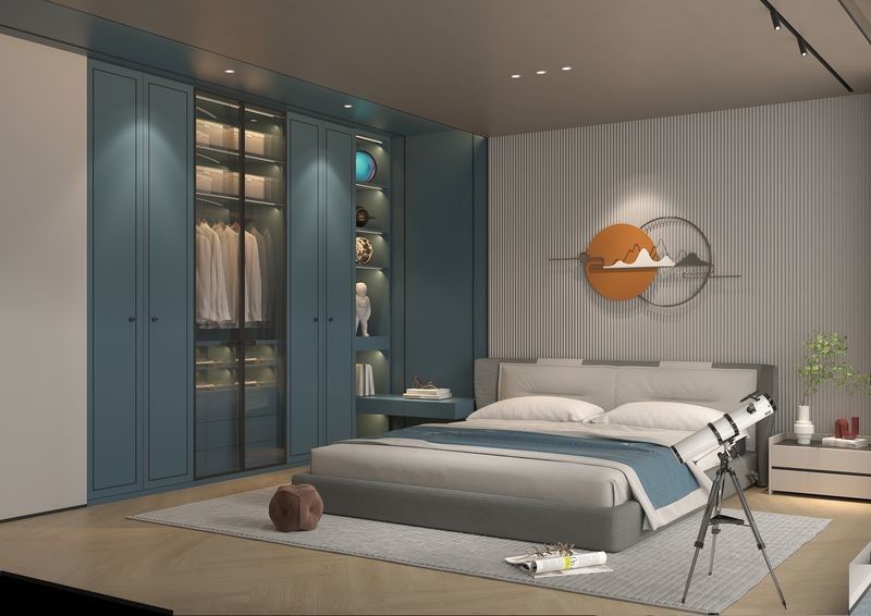 このクローゼットは,一般的なSKUではなく,デザイン主導のシステムとして提示されています.高級住宅プロジェクトにより解明された視覚的アイデンティティを作成するために,ステンレス鋼キャビネット構造と一緒にグレー/ブルーを使用します.