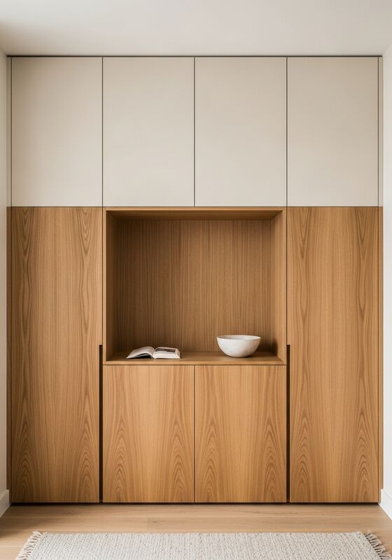| 材料と性能食品用ステンレス鋼の構造システム 304 油塗りマット仕上げの天然日本のオークファニヤ マット温かい白色のラックパネル (卵殻の平面,紙のような表面)濃い酸化鋼のアクセントフレームが湿気耐性を支持します静かで,視覚的な騒音のない前置の贅沢を求める住宅環境のための主要な寝室衣装システムで,長期にわたる日常使用柔らかい自然光が重視される東面や北面の部屋に適しています木材による保守リスクのない建築的な外観が必要です |