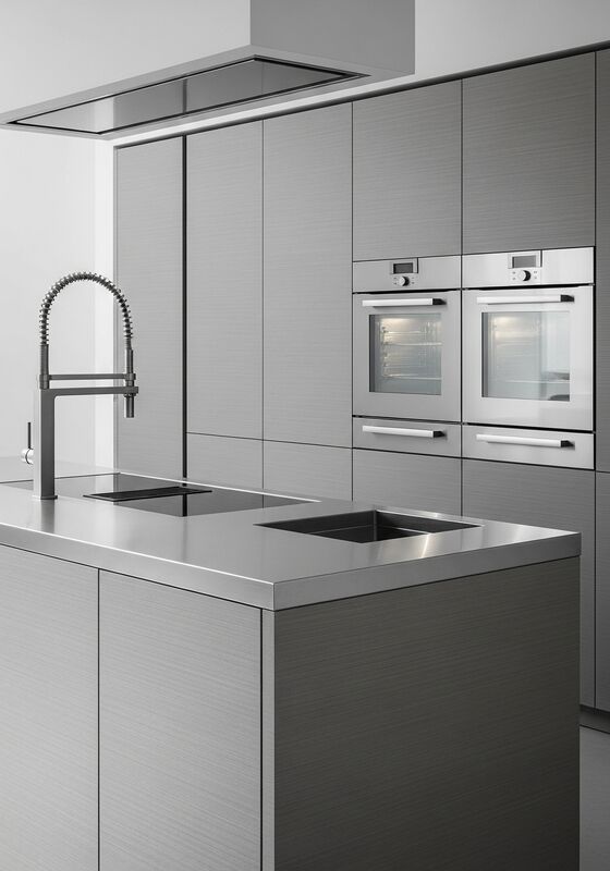 この現代のキッチンキャビネットは 食品級のステンレス鉄鋼の 304 基の構造に組み合わさった プロジェクトレベルのソリューションとして線形細粒子が水平に流れる高級住宅,ロフト改装,建築家設計の家用で,高級ユニットのフロントトップにマットグレーのポルセラン石器のコーティングギャラリー付近の生活空間この仕様は,制御マット輝き,マット灰色ポルセラン石器3mmマイクロテクスチャーの高いユニットコーティングとブラシ 304ステンレス鋼の水平粒に焦点を当てています.ディーラープロジェクト・バイヤーは 適性,仕上げ,配送の論理を 推測の少ない方法で 評価できます
